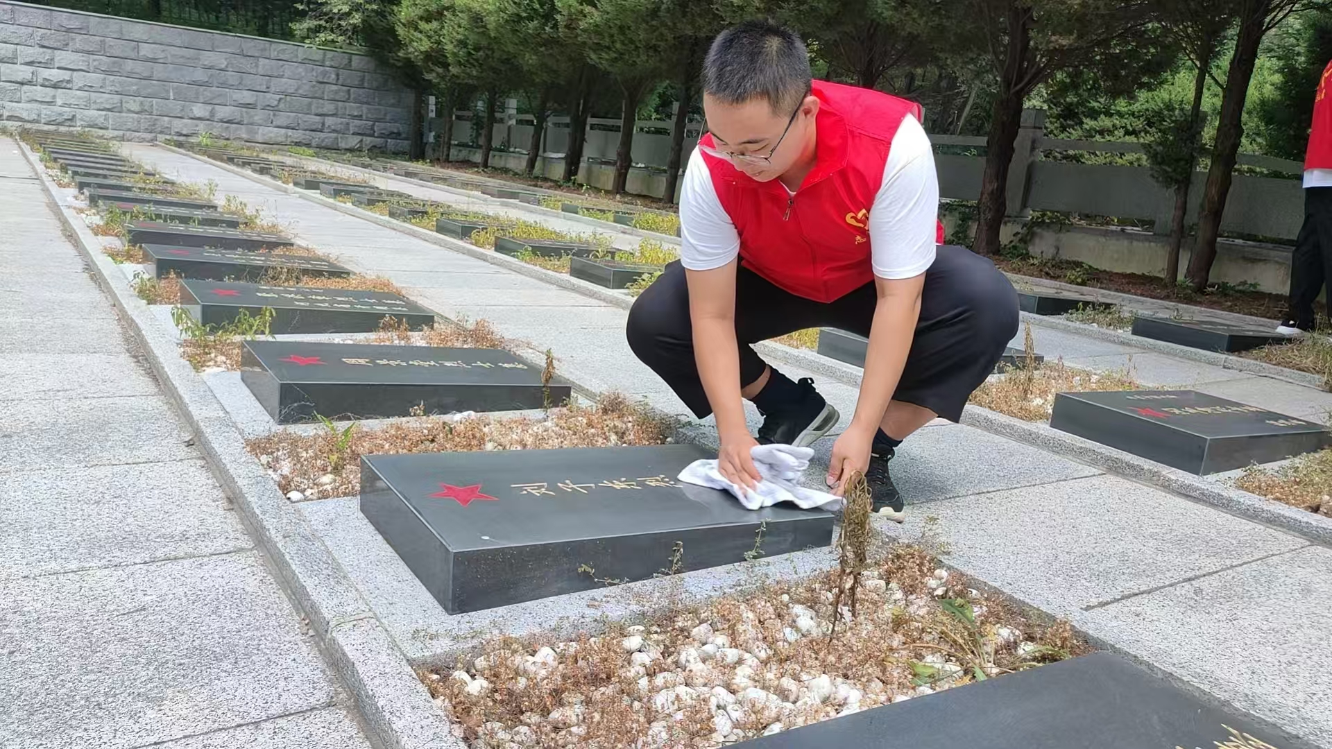 八一建军节前夕,服务队赴元宝区抗美援朝烈士陵园开展“缅怀英烈・守护初心”志愿行动。太阳集团tyc33455官网学生与社区志愿者怀着崇敬之心,一同细致擦拭墓碑浮尘、清理墓区杂草,用耐心与细心呵护英烈安息之地。此次活动不仅是对英烈的深切缅怀,更让团队成员在实践中深刻感悟了革命先辈的家国情怀。