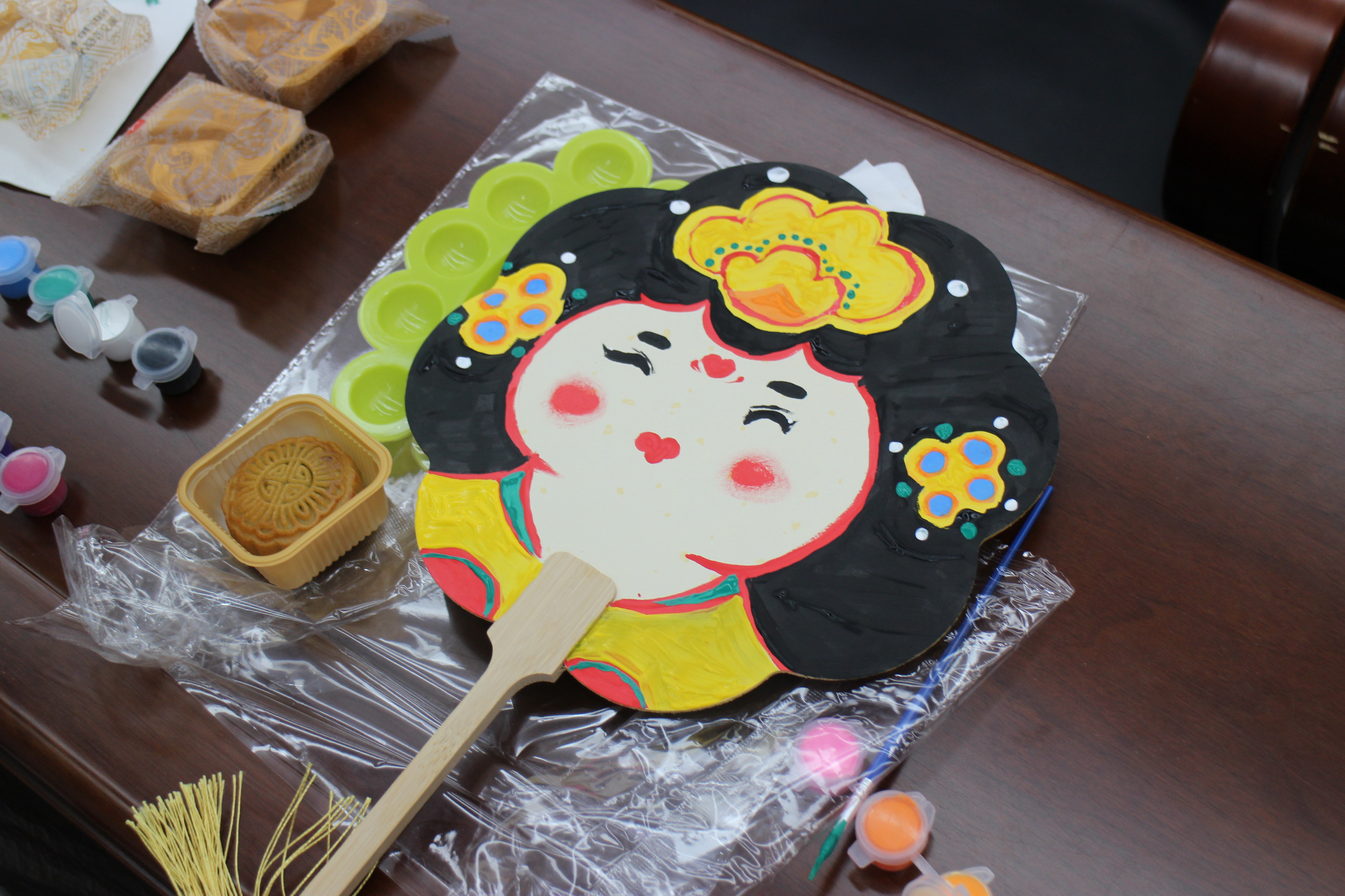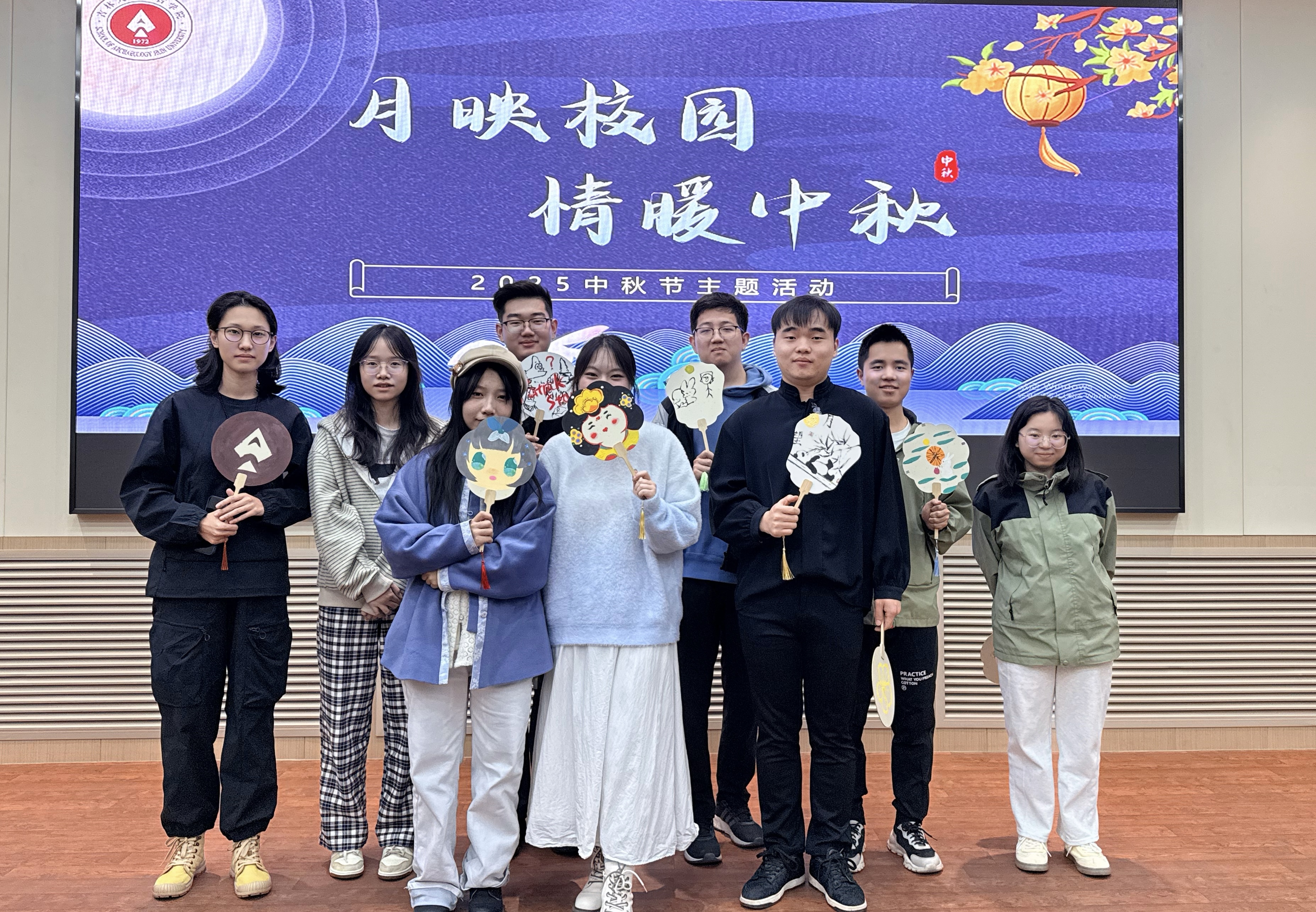 团扇绘制环节则让大家沉浸在创作的宁静与美好中。同学们以扇为纸,以笔寄情,绘制出各式各样独具特色的团扇作品。每一笔勾勒、每一抹色彩,不仅展现了同学们的巧思与才情,更承载着大家对中秋文化的理解与情感的寄托。